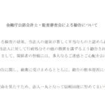金融庁公認会計士・監査審査会による検査の結果、当法人の運営が著しく不当なものと認められ、本日、金融庁長官に対し公認会計士法第41条の2の規定に基づき、当法人に対して行政処分その他の措置を講ずるよう勧告されました。 このような勧告を受けたことにつきまして、関係者の皆様には、多大なるご迷惑とご心配をおかけしておりますことを深くお詫び申し上げます。 当法人といたしましては、今回の勧告に関し、厳粛に受け止めるとともに、勧告の根本原因について、調査を行い、再発防止策を講じてまいります。